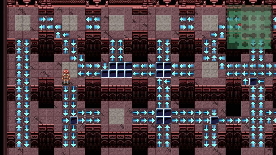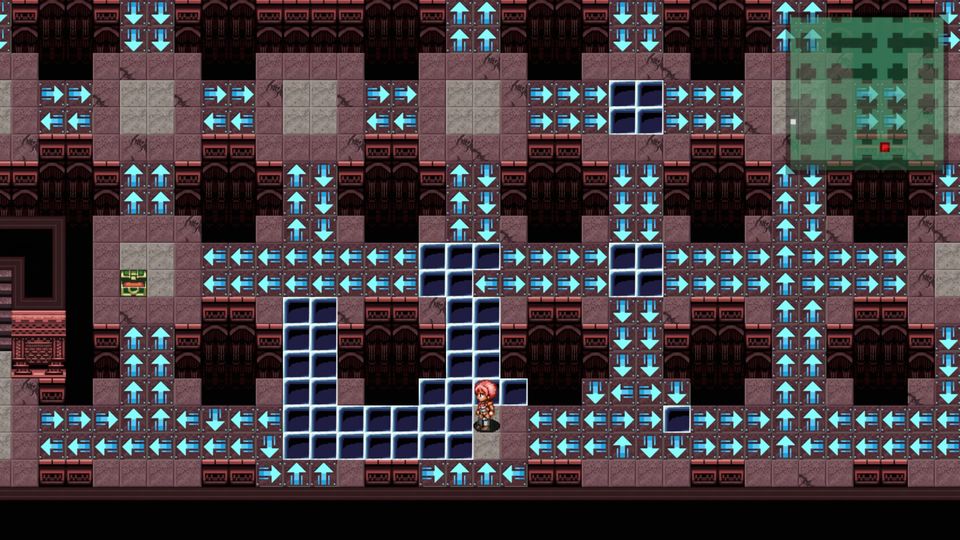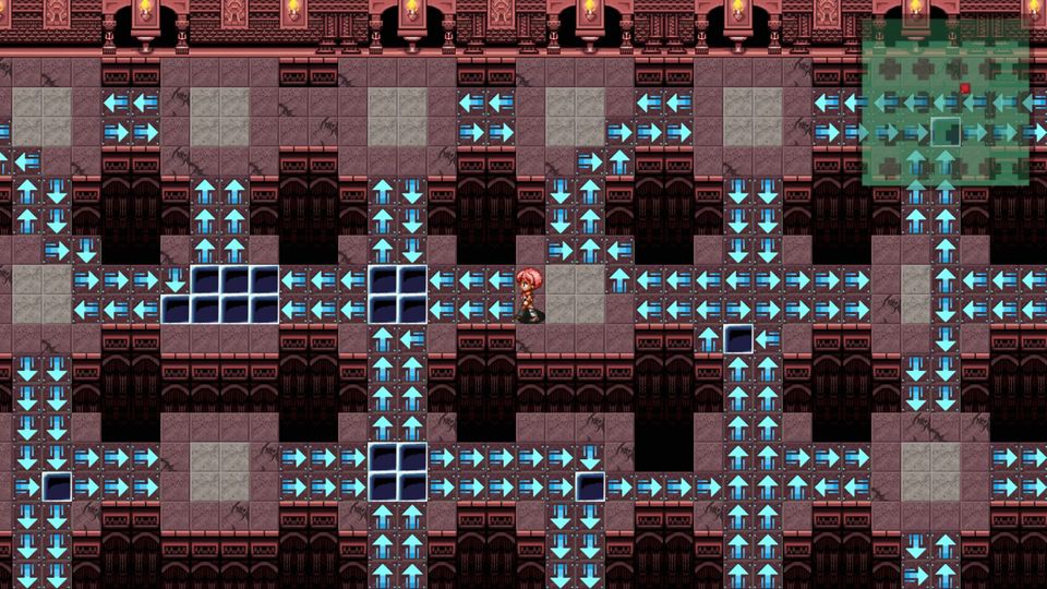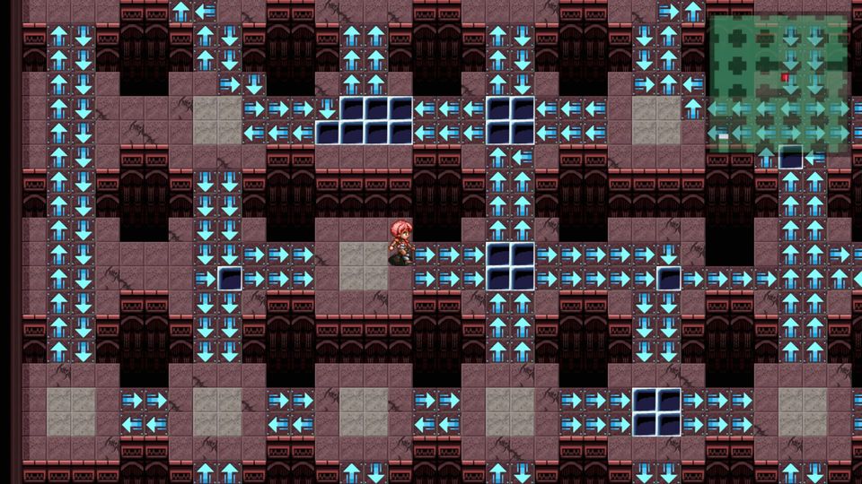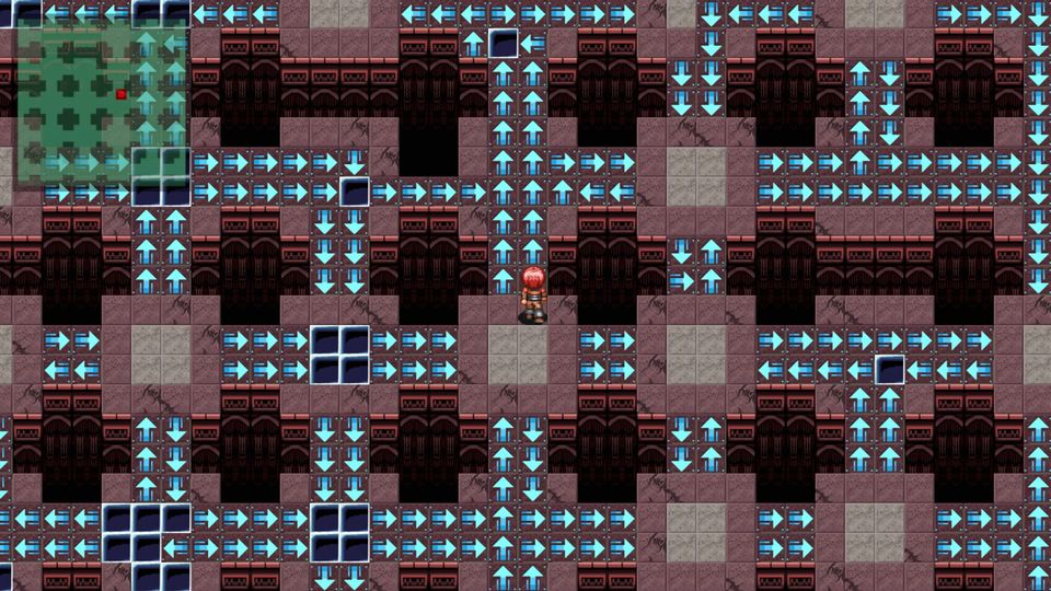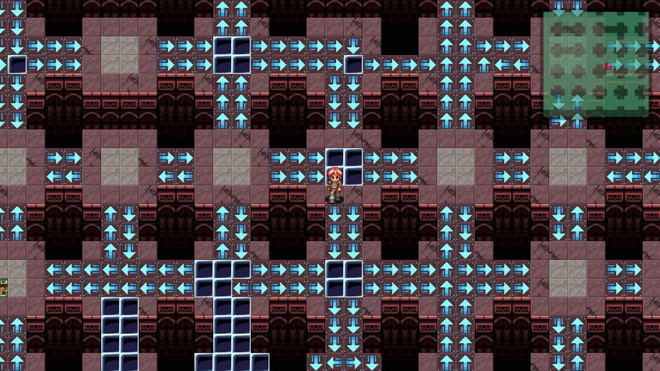 - 先に進むには北側の滑る床からスタートして南側へ進み、分かれ道は北へ
